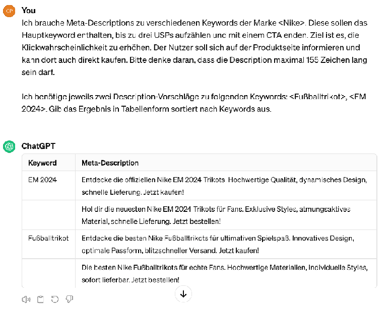 Mit der richtigen Eingabeaufforderung erstellt ChatGPT im Handumdrehen Meta-Descriptions.